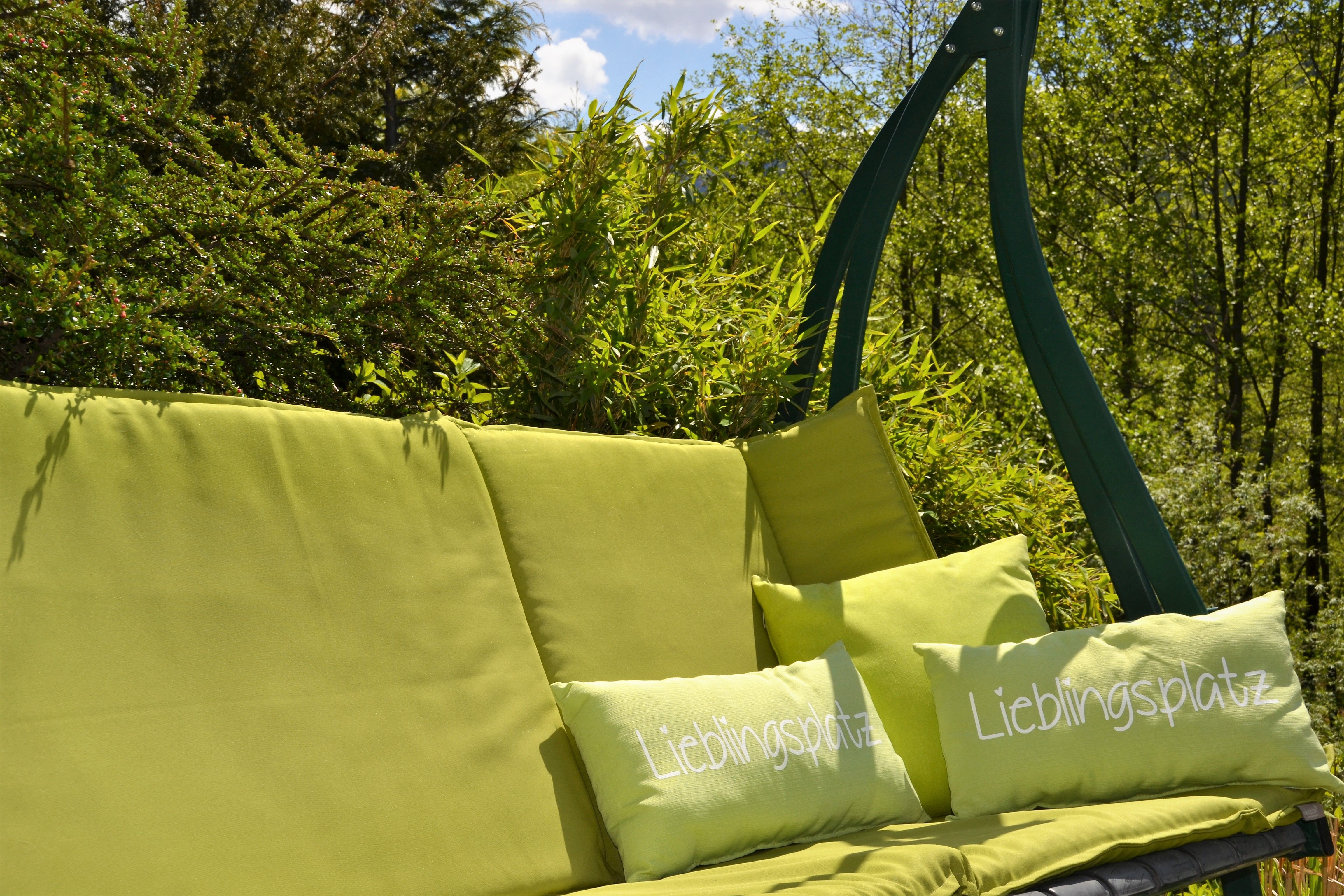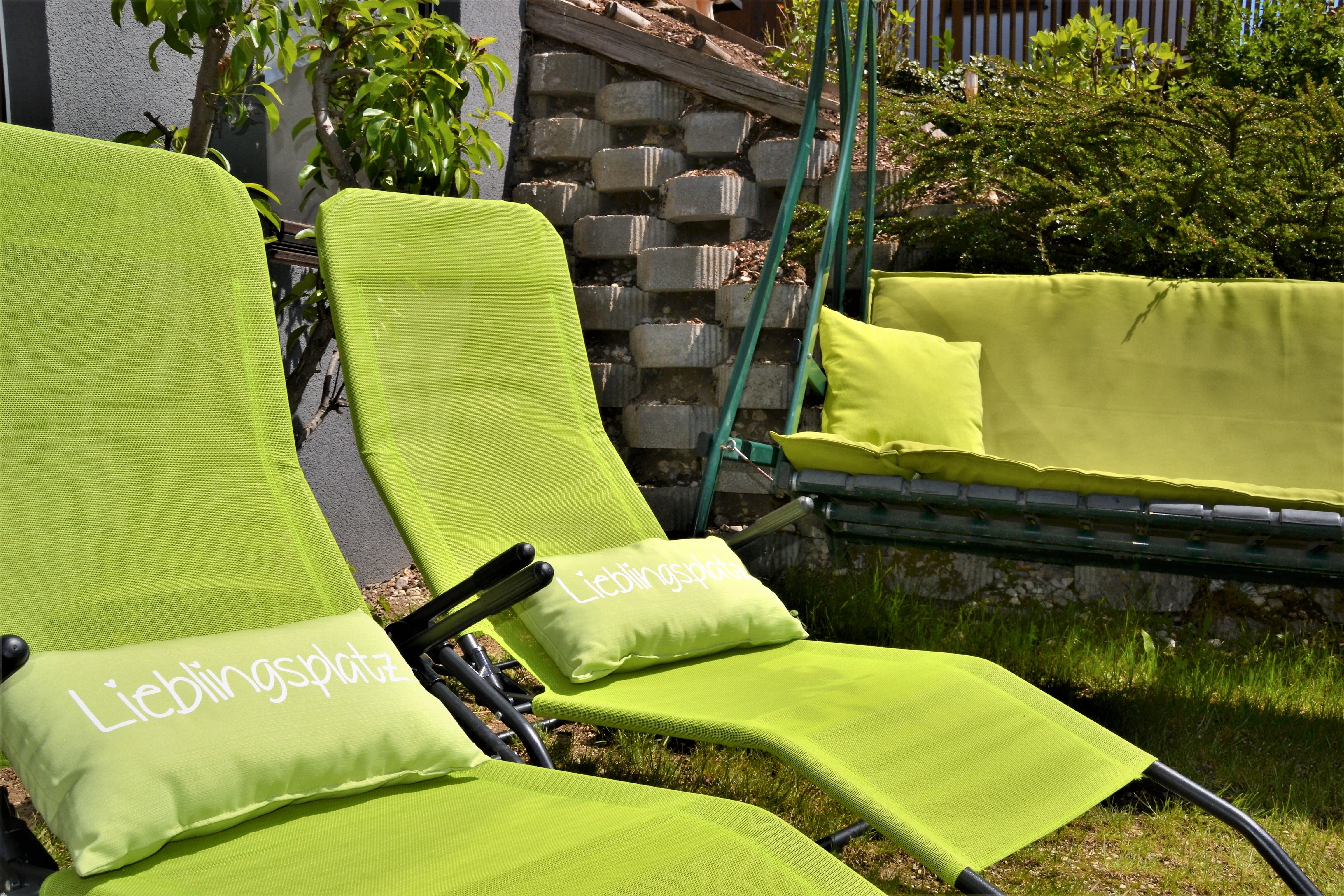 - Möblierung (Tisch & Sessel, Sonnenliegen und Sonnenschirm, Lounge)