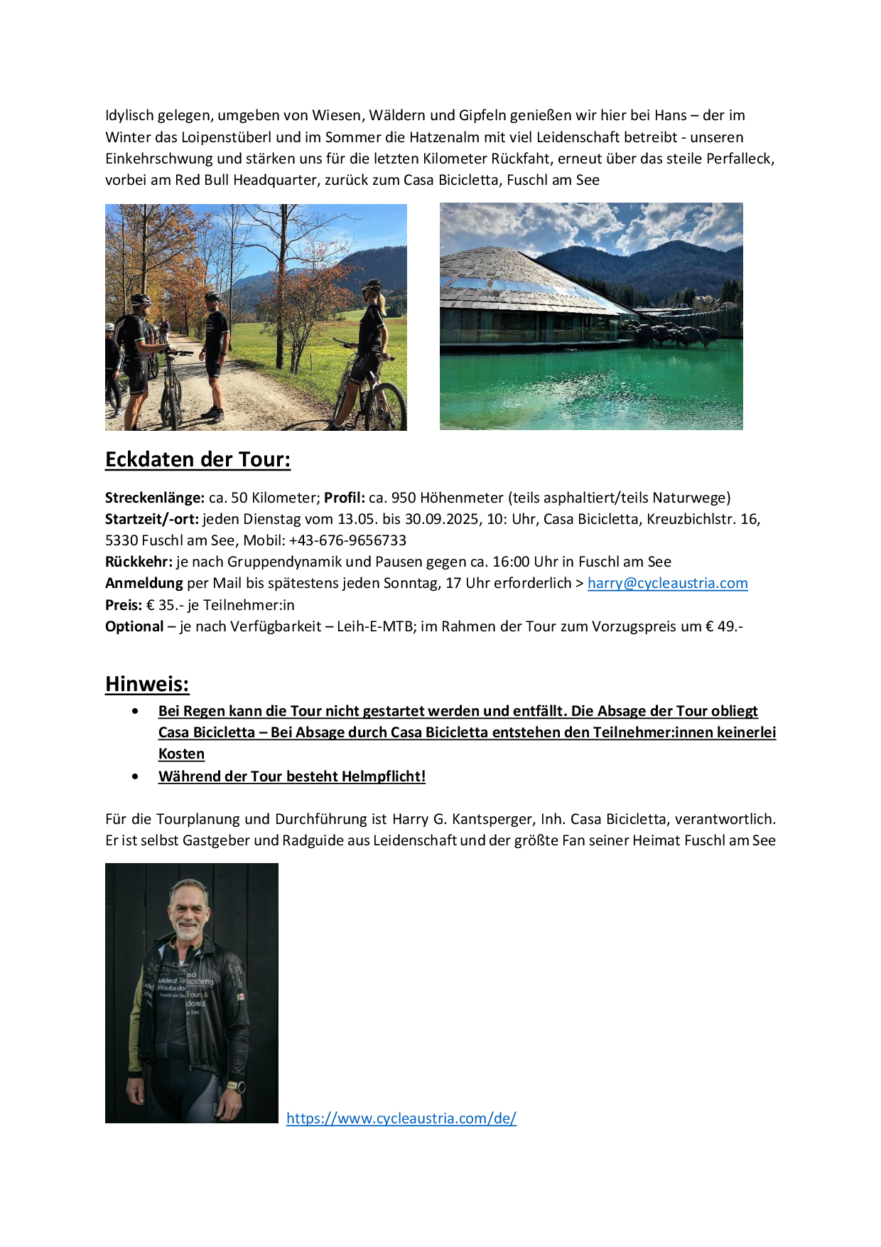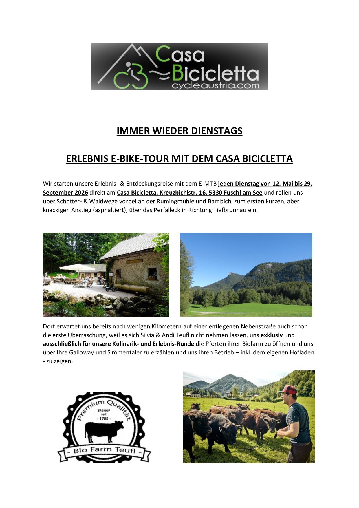 Im Rahmen unserer Kooperation mit den Tourismusverbänden der Fuschlseeregion bieten wir zwischen Mai und Oktober unsere 'Erlebnis- & Kulinarik-Tour jeden Dienstag zu vergünstigten Konditionen an: Erlebnis- & Kulinarik-Tour